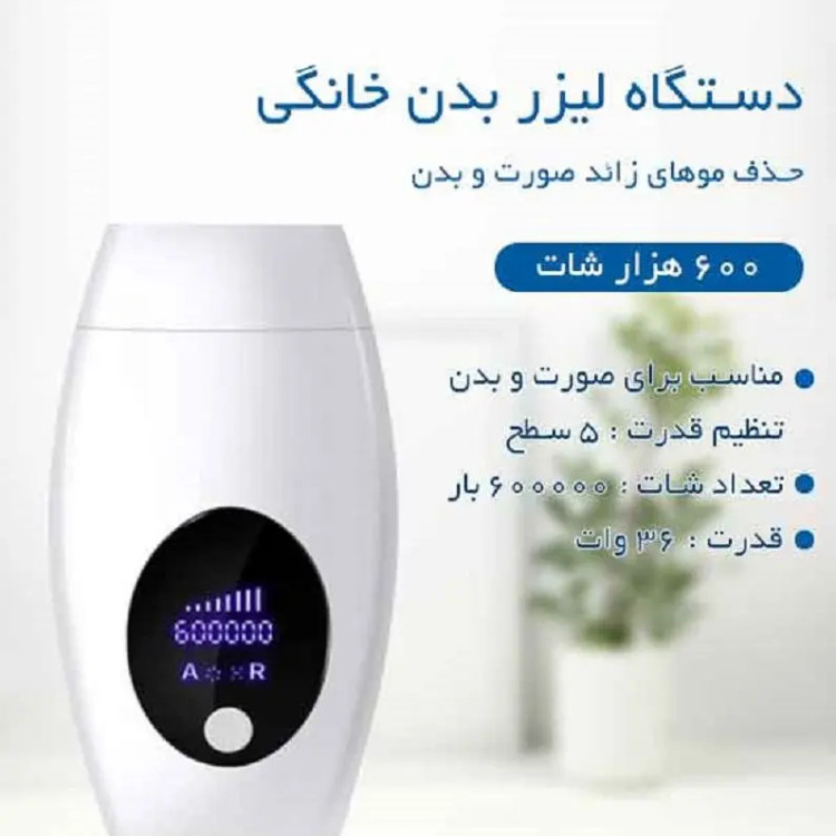 مناسب برای : رفع کامل صورت و بدن تنظیم قدرت : 5 سطح تعداد شات : 600000 بار قدرت : 36 وات ولتاژ ورودی : 100 تا 240 ولت (مناسب برای برق شهری ایران) فرکانس نامی خروجی : 59 تا 60 HZ ولتاژ کاری محصول : 12 ولت و 3 آمپر لیزر موهای زائد خانگی طبیعی است که با پیشرفت تکنولوژی شاهد حضور دستگاه های پیشرفته در خانه ها هستیم . این پیشرفت شامل لیزر موی خانگی نیز شده است . به دلیل شرایط امروز بهداشتی استفاده از لیزر خانگی موهای زائد بدن بسیار توصیه می شود . زیرا دیگر نیاز به هزینه های بالای لیزر مو زائد در سالن ها و وقت ندارید . در هر زمانی می توانید از لیزر خانگی موهای زائد صورت استفاده کنید . برند های مختلفی هستد که ليزر مو خانگي را تولید می کنند . اما در نظر داشته باشید که تمام لیزر مو زائد خانگی موثر نیستند . برند های محدودی هستند که می توانند لیزر موهای زائد خانگی را موثر طراحی و در بازار ارائه کرده باشند . بهترین دستگاه لیزر خانگی 2021 مجموعه ما نیز بهترین و موثر ترین برند ها را ارائه می کند . اگر چه واضح است که قدرت این دستگاه نسبت به دستگاه های چند صد میلیونی نیست . اما در نظر داشته باشید که تفاوت عمده در طراحی آنها این است که دستگاه های لیزر مو در سالن ها نسبت به ليزر موهاي زائد بدن در خانه برای استفاده بصورت مستمر و بی وقفه طراحی شده اند . اما لیزر مو در خانه برای بخش هایی که از بدن که واقعا موهای خیلی ضمختی نداشته باشند لیزر بدن خانگی بسیار موثر تر است . همچنین برای ترمیم نیز فوق العاده است و می توان در مدت کوتاهی از لیزر موهای زائد خانگی قیمت نظر مالی بسیار صرفه جویی شود . این دستگاه در گروه دستگاه های پوست و زیبایی قرار میگیرد . دستگاه ليزر موهاي زائد بدن لیزر مو در خانه پیش از این بدلیل نبود دستگاه های پیشرفته لیزر موهای زائد روتین نبود . اما امروزه با استفاده از دستگاه لیزر مو در خانه میتوان موهای زائد صورت و بدن را انجام داد و از نتایج آن شگفت زده شوید. . بعلاوه که قیمت بهترین مارک دستگاه لیزر خانگی به شکلی اقتصادی درنظر گرفته شده است. به همین منظور لیزر بدن خانگی می تواند در مدت کوتاهی از نظر اقتصادی به نفع شما باشد . شما با تهیه یک دستگاه لیزر خانگی اصل هم برای خود و هم برای دیگران می توانید لیزر مو در خانه با لیزر موی خانگی را انجام دهید . مشخصات لیزر موی خانگی بدن و صورت IPL یکی از معیارها و مشخصه فنی در دستگاه های لیزر موهای زائد بدن شات می باشد . این دستگاه دارای 600000 هزار شات واقعی ( و نه نامی ) برای رفع موهای زائد است . بدلیل نوع طراحی می تواند برای تمام بدن و صورت کاربرد داشته باشد . درصد تاثیر این لیزر بدن خانگی 96 بوده و زمان نتیجه گیری قطعی آن توسط کمپانی تولید کننده 2 ماه در نظر گرفته شده است . تنظیم دستگاه در 5 سطح قابل تنظیم است . در تکنولوژی طراحی آن طول موج آن نیز از 475 تا 1200 در نظر گرفته شده که نتیجه این موضوع نداشتن هیچ گونه عوارض در حین استفاده از آن است