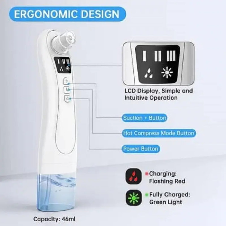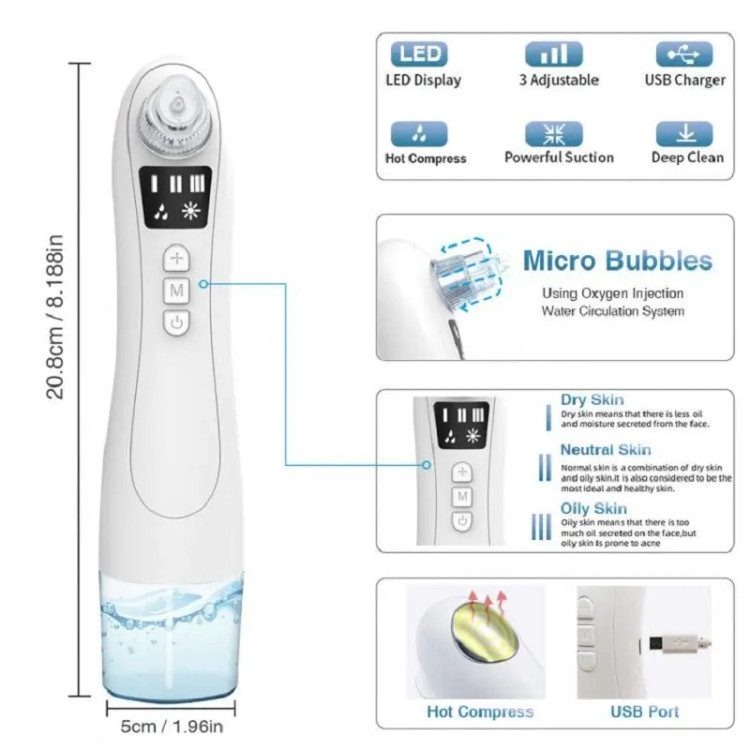 بررسی اجمالی محصول میکرودرم مخزن دار _ پاکسازی عمق منافذهای پوست دارای اسکوم گرم دارای 3 سطح قدرت با مکش قدرتمند دارای 4 سری حذف چربی های انباشته شده پوست آبرسانی پوست های خشک لیفت پوست های افتاده و شل حذف چربی های انباشته شده حذف جوش های سر سیاه حذف لکه و پاکسازی منافذهای باز صورت آبرسانی پوست های خشک تمیز کننده منافذ صورت چند توصیه برای استفاده درست از دستگاه میکرودرم اسکوم دار بلک هد قبل از استفاده از مواد پاک کننده آرایش برای تمیز کردن بقایای آرایش و لکه های صورت استفاده نمایید. قبل از استفاده کمپرس گرم را به مدت 3-5 دقیقه روی بینی قرار دهید تا جوش های سرسیاه عمیق خارج شود. محصولات مراقبت از پوست را بعد از پاکسازی استفاده کنید.