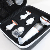 : ضد آب و قابل شستشو : قابلیت اصلاح به صورت خشک و مرطوب : قابلیت شارژ سریع : ساخت کشور هلند تکنولوژی اصلاح: برش مستقیم، برش چرخشی جنس تیغه: استیل پیشرفته قابلیت اصلاح با شماره صفر: دارد قابلیت خط زن: ندارد قابلیت شستشو: دارد منبع تغذیه: باتری قابل شارژ (بی سیم) شامل 5 سری چرخشی: اصلاح ریش اصلاح موهای سر و صورت سری موزن گوش و بینی سری اصلاح موهای بدن یک عدد شانه با امکان تغییر سایز از ۱ میلی متر تا ۲۰ میلی متر مهمترین ویژگی هایی که در این دستگاه به چشم میخورد قابل استفاده بودن دستگاه بصورت تر و خشک و زیر دوش است. همچنین می توان به همراه دستگاه از فوم و ژل اصلاح استفاده کرد. تکنولوژی برش ماشین اصلاح چند کاره فیلیپس بصورت مستقیم و چرخشی می باشد. سری های اصلاح سر و صورت، و بدن ریش تراش چند کاره فیلیپسموها را همانند خودتراش اصلاح و تمیز میکند و برای اصلاح موهای بلند تر می توان از شانه ای که امکان تغییر سایز دارد بر روی سری اصلاح سر و صورت استفاده کرد. از طرفی سری اصلاح ریش به دلیل برخورداری از تیغه های ۳ بعدی و منعطف، ریزترین و ضخیم ترین موهای صورت و گردن را اصلاح می کند و باعث می شود در تماس با پوست صورت، مخصوصآ نواحی انحنا دار مثل گردن، از پوست در برابر خراش و بریدگی محافظت کند و نتیجه ای بسیار رضایت بخش را به ارمغان می آورد. با استفاده از سری موزن موهای گوش و بینی را به تمیزی اصلاح می کند. همچنین بدنه دستگاه دارای پوششی ضد لغزندگی است تا با امنیت و آسودگی خاطر بتوان از آن استفاده کرد. از دیگر نقاط مثبت این دستگاه، شارژ شدن آن از طریق کابل USB است و حتی در داخل اتومبیل یا حتی با استفاده از پاوربانک نیز میتوان آن را شارژ کرد.