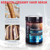 ماسک مو کراتین هیر 1000 میل keratin Creamy Hair mask 1000Ml ماسک مو کراتین هیر 1000 میل با هدف افزایش استحکام و تقویت ساقه مو ها طراحی شده. این ماسک سرشار است از کراتین که پروتئین اصلی سازنده مو های شما می باشد. علاوه بر این این ماسک مو حاوی ویتامین B5 و پروتئین ابریشم نیز می باشد. بنابراین با تامین کراتین و تغذیه مو، ساقه مو های شما فوق العاده سالم و محکم شده و از بروز آسیب هایی مثل شکستگی، مو خوره، خشکی و… جلوگیری می شود، همچنین در صورت وجود، این مشکلات درمان می شوند. در صورتی که دچار آسیب های بالا هستید و یا مدت زیادی را در برابر آلاینده های محیطی قرار دارید و حتی اگر مو هایی آسیب پذیر و شکننده دارید، همچنین برای پیشگیری و تغذیه مو ها، ماسک مو کراتین محصولی بسیار مفید خواهد بود. علاوه بر موارد بالا این محصول موهای شما را مرطوب و تغذیه کرده و ظاهر آنها را بسیار جذاب و شاداب خواهد کرد، با افزایش نرمی و انعطاف پذیری، حالت پذیری مو های شما افزایش خواهد یافت و برای همیشه با مو های وز، خشک و شکننده خداحافظی خواهید کرد ویژگیهای ماسک مو کراتین هیر 1000 میل برند هیر HAIR کشور برزیل تولید عمارات ماسک مو کراتین هیر غنی از کراتین حاوی ویتامین B5 و پروتئین ابریشم مرطوب کننده مو نرم کننده درخشان کننده مغذی ضد موخوره ضد شکستگی افزایش استحکام مو بهبود حالت پذیری مو افزایش سلامت فولیکول های مو 1000 میل طرز استفاده از ماسک مو کراتین هیر 1000 میل ابتدا موهای خود را به صورت معمول با شامپو بشویید. ساقه موها را به میزان لازم با ماسک مو آغشته نمایید و اجازه دهید تا ماسک جذب ساقه موها شود. ماسک مو را به طور یکنواخت از بالاتر از ریشه تا انتهای تارهای مو پخش کنید. بعد از گذشت 2 تا 3 دقیقه، موها را آبکشی کرده و به شکل دلخواه آرایش نمایید. هفته ای یک الی دو بار تا رسیدن به نتیجه دلخواه میتوانید این کار را انجام دهید. تماس این محصول با پوست سر مشکلی ایجاد نمیکند. برای موهای آسیبدیده یا زبر میتوانید بعد از هر بار شستشوی مو از ماسک مو استفاده نمایید.