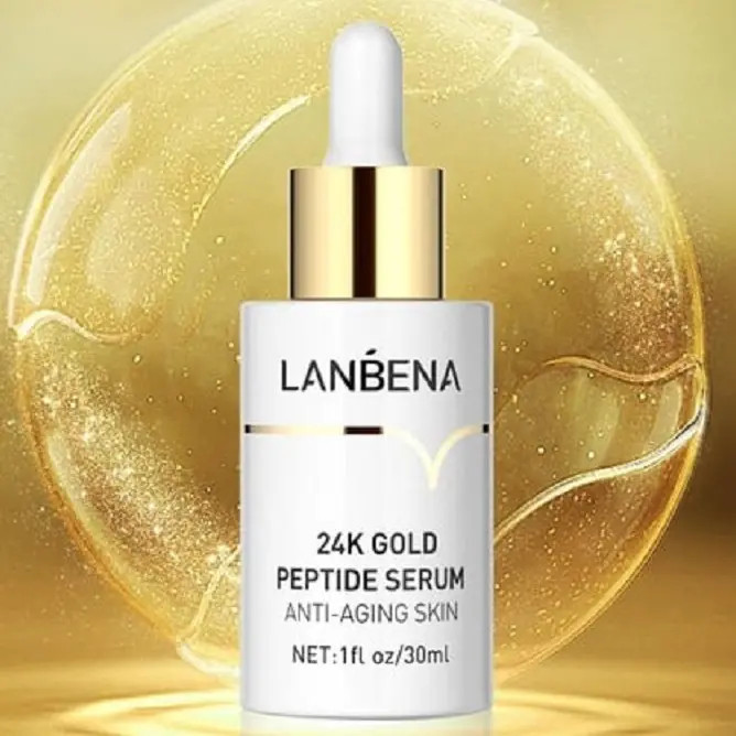 سرشارِ 6 پپتيد و طلاء 24 عیار ضد خطوط چين و چروك صورت از پيري زودرس پوست جلوگيري ميكند درمان شُلی و افتادگي پوست آبرسان و مرطوب كننده روشن کننده فوق العاده قوی ليفت و سفت كننده پوست کلاژن ساز قوی پوست صورت سرم طلا پپتید لانبنا
