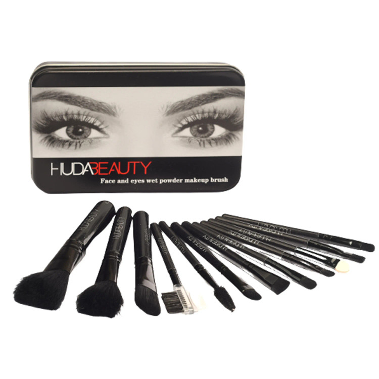 ست براش 12 عددی هدی بیوتی Huda beauty دارای قوطی فلزی