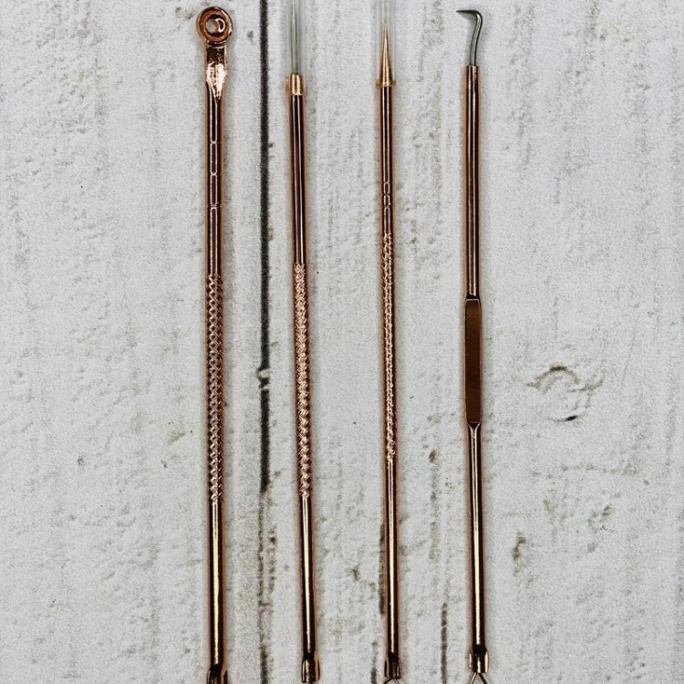 ویژگی ها و مزایا: _4 عدد میله متفاوت با کارایی های مختلف _طراحی دو سر و فوق العاده جذاب _حذف جوش، آکنه و بستن منافذ باز صورت _از بین بردن لکه های پوستی و جوش های سر سیاه وجوش های سرسفید _روشی پاک و بهداشتی برای از بین بردن لکه ها و آکنه معرفی ست تیز کومدون طلای۴تکه لانبنا: کومدون ها یک نوع جوش زیر پوستی به رنگ پوست می باشند که زیادتر در چانه و پیشانی دیده می شوند.دلیل به وجود آمدن کومدون، بسته شدن منافذ باز پوست می باشد. قلم کومدون ابزاری است که برای برداشتن جوشهای سرسیاه و سرسفید استفاده میشود. این گونه قلمها معمولا میلههای کوچک شبیه به هم و همراه با حلقههای متصل به انتها هستند و گاهی یک نوکتیز دارند. این ابزار برای خارج کردن هسته جوش بدون آسیب زدن به پوست شما طراحیشده است. ست پیلینگ میله کومدون چهار تیکه زیبایی برای شما آماده شده است شامل 4 عدد میله پیلینگ یا همان تیر کومدون می باشد که برای تخلیه کردن جوشهای صورت مخصوصا جوشهای سرسیاه ودرآوردن موهای زیرپوستی استفاده میشود. روش استفاده: قبل از استفاده توصیه میشود که صورت را بخور داده و تیر کومدون ها را با الکل ضد عفونی نمایید سپس با نوک تیز و سوزن مانند آن در روی جوش سوراخی ایجاد کنید و با سر دیگر و گرد آن جوش را به سمت پایین فشار داده تا محتویات داخل جوش بیرون بزند و پوست تمیز شود.