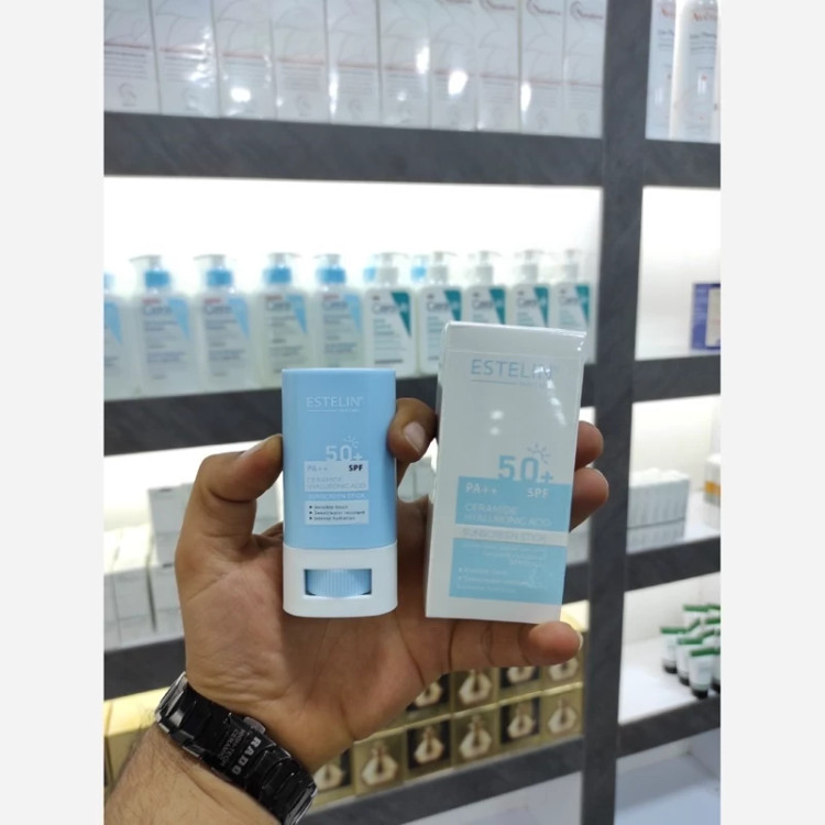 ضدآفتاب استیکی استلین SPF 50 هیالورونیک اسید و سرامید (آبی)
