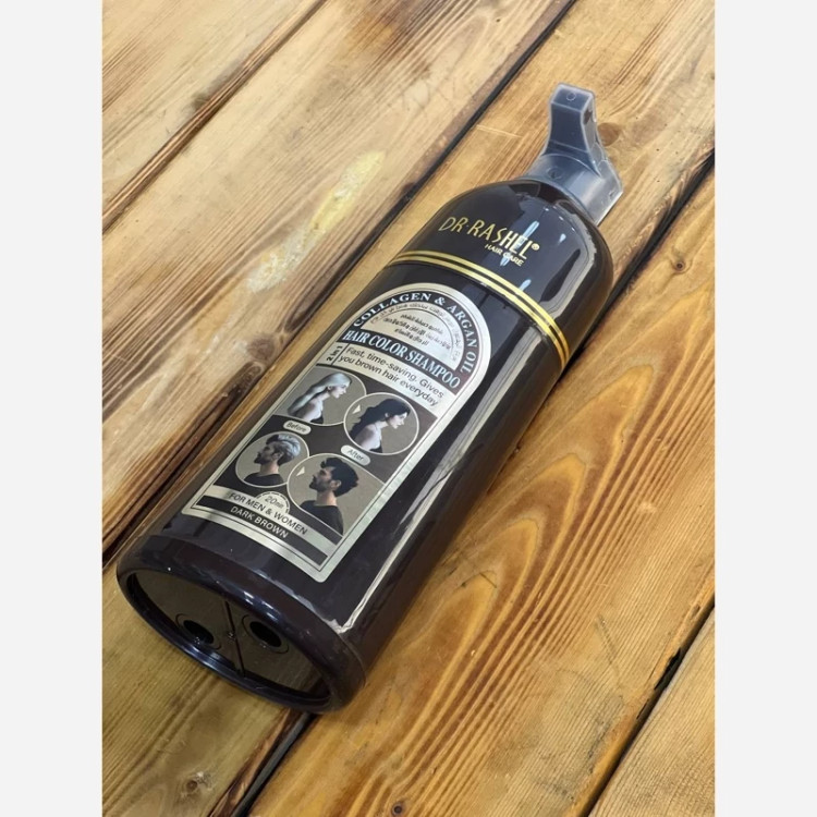🟤 شامپو رنگ دکتر راشل حاوی کلاژن و روغن آرگان رنگ قهوهای تیره حجم 400 میلی لیتر
