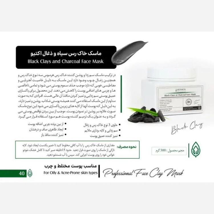 ماسک خاک رس سیاه و ذغال اکتیو هرموس