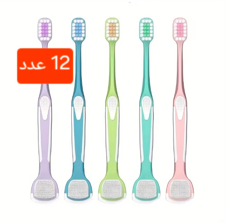مسواک دو سر دندان و زبان شور در ۵ رنگ مختلف (بسته12عددی)