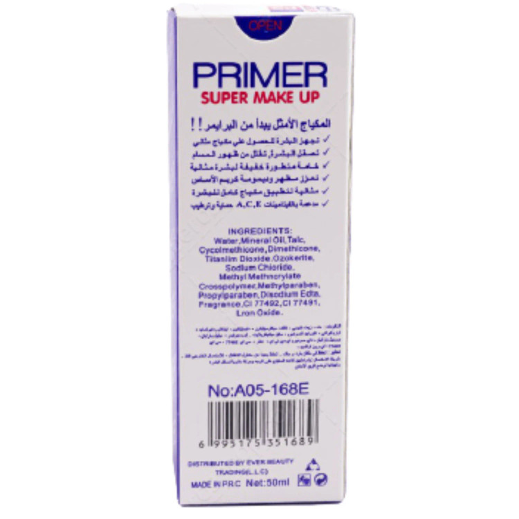 حاوی ویتامین A,C,E بهترین زیر ساز آرایش موجود در بازار بدون ایجاد حساسیت مناسب انواع پوست ها وزن 50 میل کاربرد پرایمر : آماده سازی پوست برای میکاپ صاف و یکدست کردن پوست و کاور کردن منافذ باز پوست پوشش دهی چروک های سطحی و عمیق بالا بردن دوام و ماندگاری آرایش مات کردن و جلوگیری از برق زدن پوست (پرايمر هايى هم وجود دارند كه مات كننده نباشند مثل پرايمر هاى روغنى که برای پوستهای خشک مناسب است) محو کردن انواع لک، جای جوش، سیاهی زیر چشم و … با استفاده از پرایمرهای رنگی نحوهی استفاده از پرایمر : مقدار مناسبی از پرایمر را روی پوست بزنید و آن را پخش کنید پس از اینکه یک لایه نازک از پرایمر بر روی پوست صورت کشیده شد، حدود ۳۰ ثانیه صبر کنید تا پرایمر صورت خشک بشه و بعد اقدام به مراحل بعدی آرایش خود کنید.