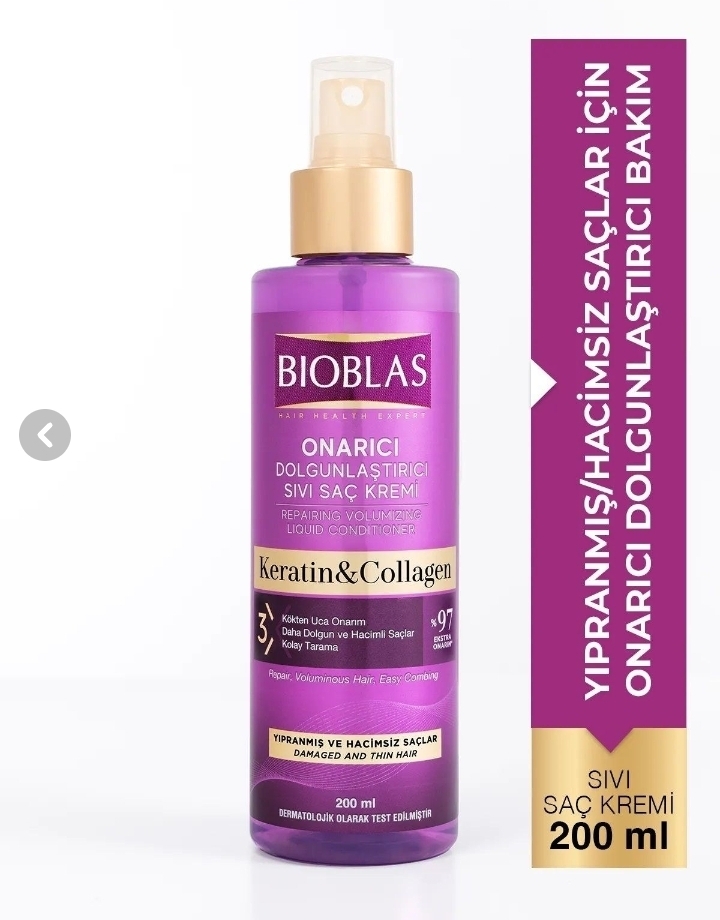 نرم کننده مو کرم مایع کلاژن کراتین بیوبلاس حجم 200 میلی لیتر