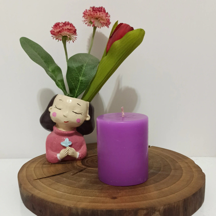 شمع استوانه ای رنگ بنفش ارتفاع ۷ سانت قطر ۵ سانت معطر بدون دود تا انتها دارای فیتیله است استفاده شده از مواد مرغوب و با کیفیت قابل سفارش در انواع رنگ دلخواه میتوانید برای سایر رنگهای دلخواه هماهنگ کنید