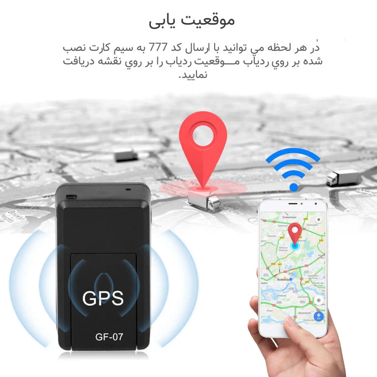 آموزش استفاده از ردیاب GF-07: ابتدا یک سیم کارت تلفن و یک رم (کارت حافظه) میکرو تهیه کنید. درپوش روی ردیاب مینی مغناطیسی GPS GF-07 را با توجه به جهت قرار دادن سیم کارت باز کنید،سیم کارت و کارت حافظه (رم) میکرو را در آن قرار دهید. چراغ قرمز رنگ محصول به طور خودکار چهار بار چشمک می زند و سپس خاموش می شود. بعد از 30 ثانیه دستگاه شنود وارد حالت آماده به کار می گردد. کنترل پیامکی! کنترل از طریق اس ام اس از جمله قابلیت های منحصر به فرد این محصول می باشد. با استفاده از این ویژگی ، برای کنترل مینی ردیاب GF07 ، کافی است که کد های دستوری مد نظر خود را که همراه با دفترچه راهنمای فارسی محصول برای شما ارسال می شود ، به شماره سیم کارت روی مینی جی پی اس GF07 ارسال نمایید. با استفاده از این ویژگی دیگر لازم نیست برای سیم کارتی که بر روی ردیاب نصب کرده اید ، داده اینترنت تهیه نمایید.