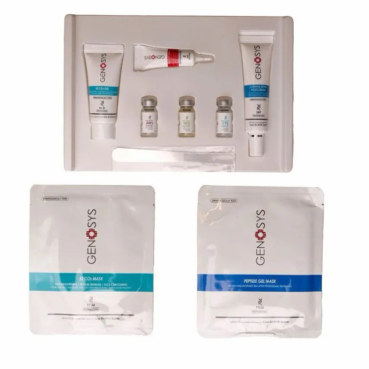 استارتر کیت ژنوسیس یک کیت کامل برای جلسات درمانی شامل: ژل کربوکسی CO2 ژنوسیس کرم ضد آفتاب ژنوسیس کرم ضد التهاب و ترمیم کننده ژنوسیس ماسک ژلی پپتاید ژنوسیس ماسک فعال ساز ژل کربوکسی ژنوسیس کوکتل CTS (ضد اسکار) کوکتل HES (آبرسان) کوکتل AWS (جوانساز و ضد چروک) کاردک فلزی ماسک این کیت برای افرادی که نیاز به جلسات فوری درمانی دارند و همچنین قصد تست کیفیت برند ژنوسیس کره را دارند کاملا مناسب است.