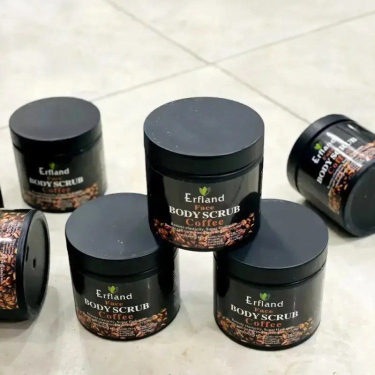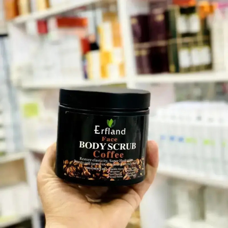 اسکراب صورت و بدن قهوه دانه ریز پودری ارفلند 680 گرم Erfland fine coffee powder face and body scrub 680 grams
