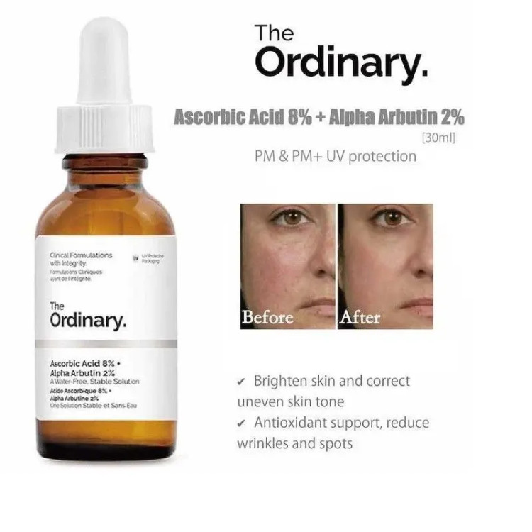 سرم آسکوربیک اسید 8درصد و آلفا آربوتین 2درصد اوردینری حجم 30 میل The Ordinary Ascorbic Acid 8 and Alpha Arbutin 2