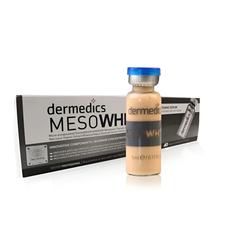 روشن کننده و سفید سازی فوق العاده پوست حذف علائم پیری و جوانسازی پوست یکدست کردن رنگدانه های پوست صاف کردن و درخشندگی صورت ماندگاری عالی و طولانی مدت مناسب برای خانم ها و آقایان ساخت لهستان حجم: یک ویال ۵میل سرم روشن کننده مزو وایت درمدیکس سرم روشن کننده مزو وایت درمدیکس محلولی برای لکه های پیری و پوست تیره